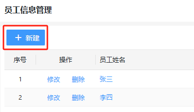列表页面系统操作,可以跳转表单新增页面进行数据新增。