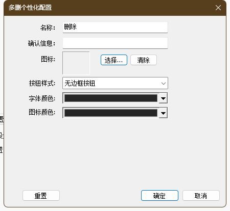 可以对多删按钮的文本、图标、按钮文字颜色等进行配置。