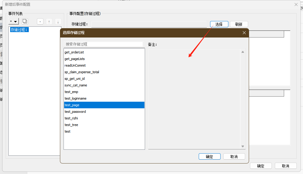 存储过程:点击【选择】可以在弹出窗中自动获取到当前表单对应的数据连接下的存储过程。