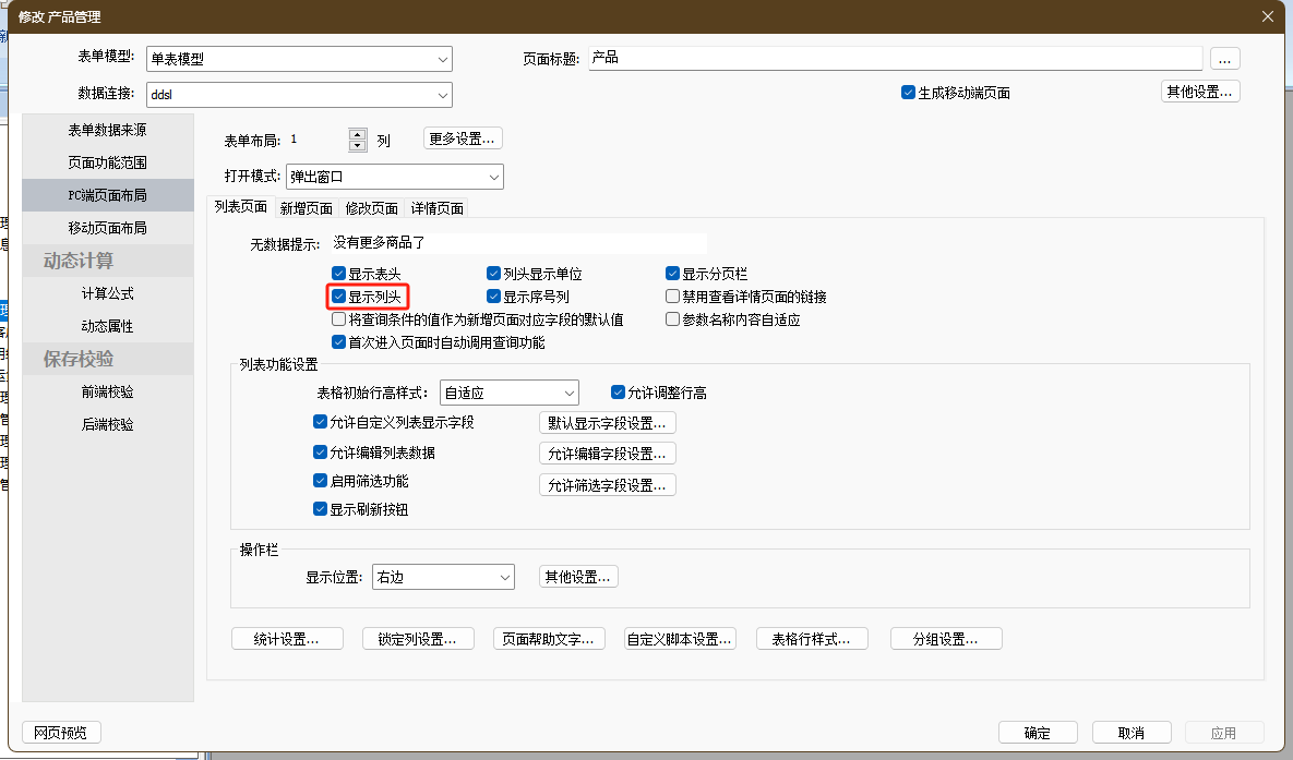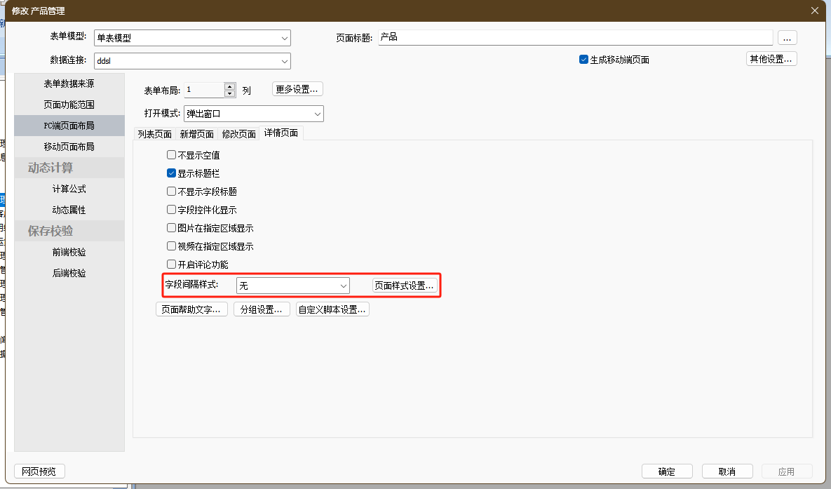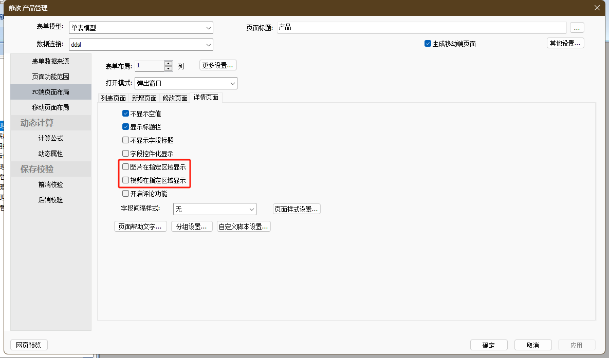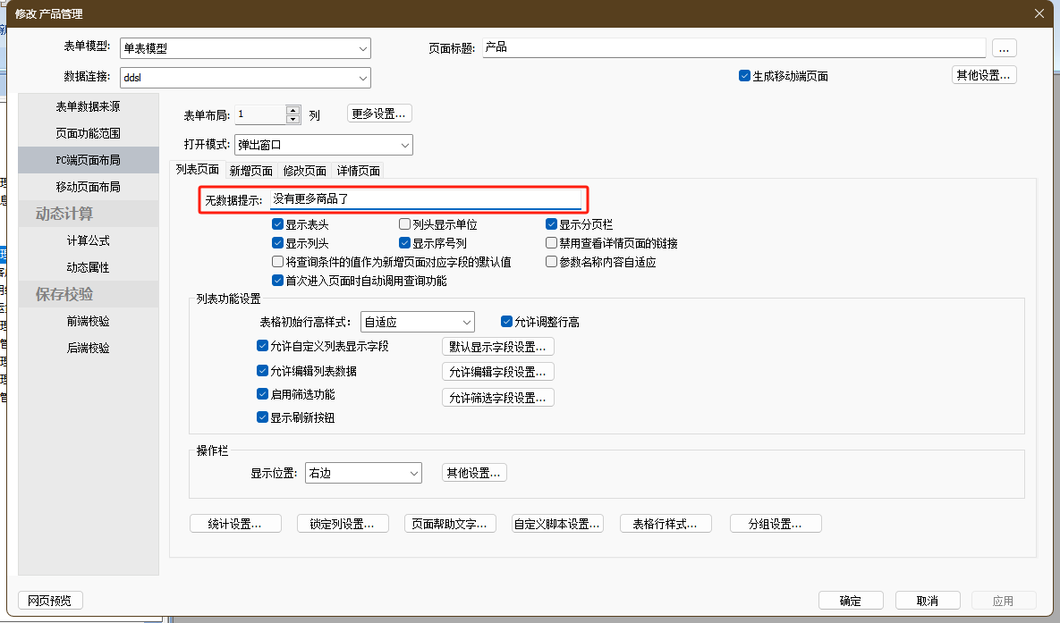 根据业务展示需要配置PC端表单各类页面显示要素。