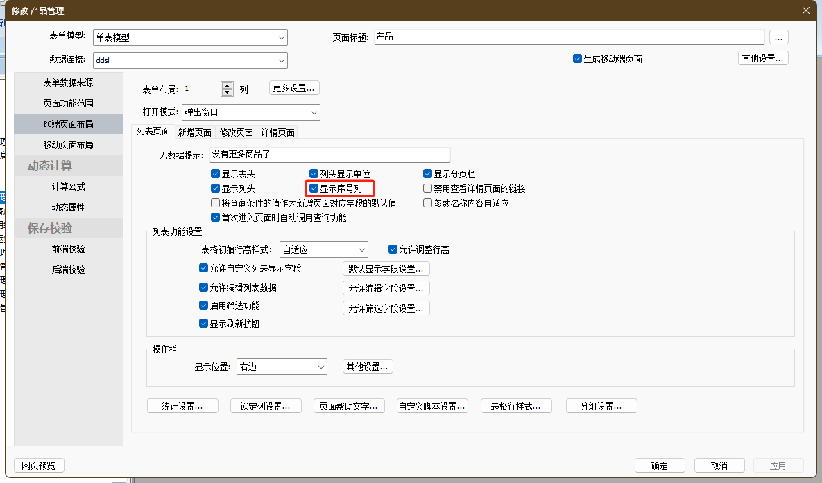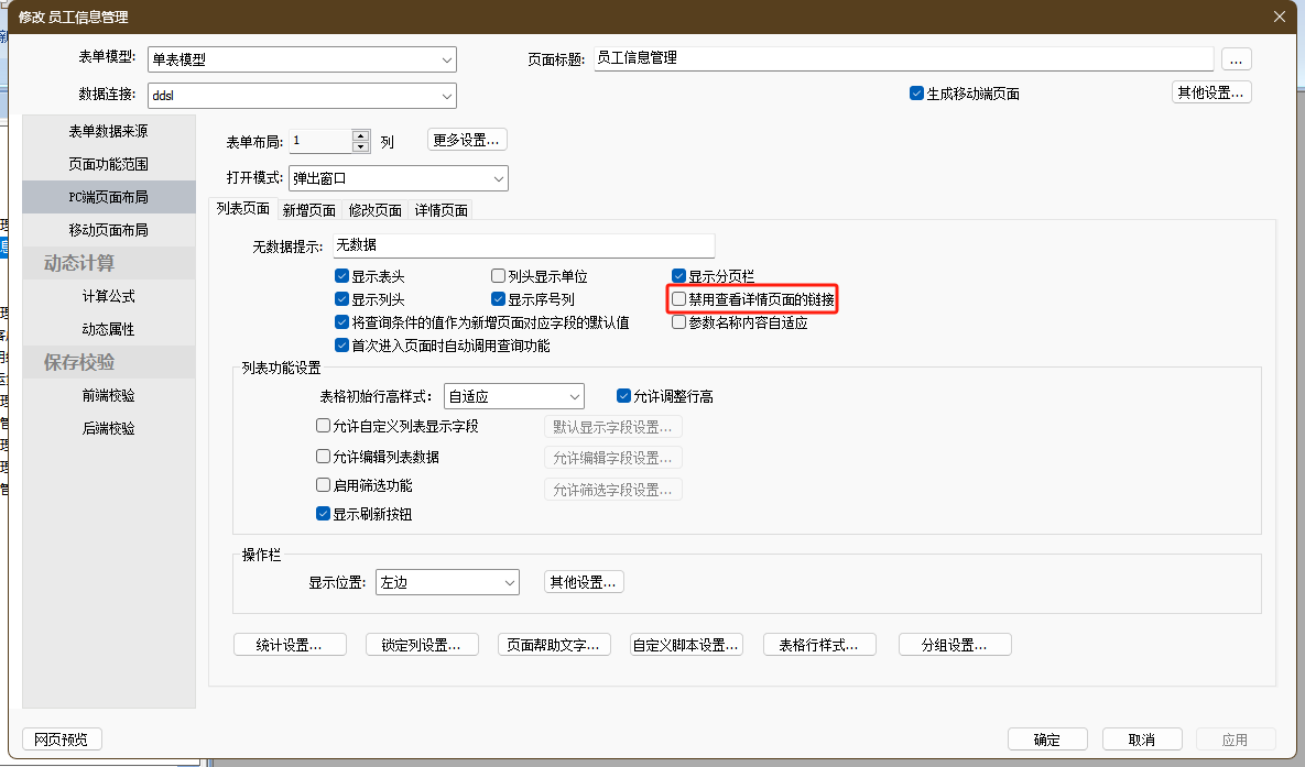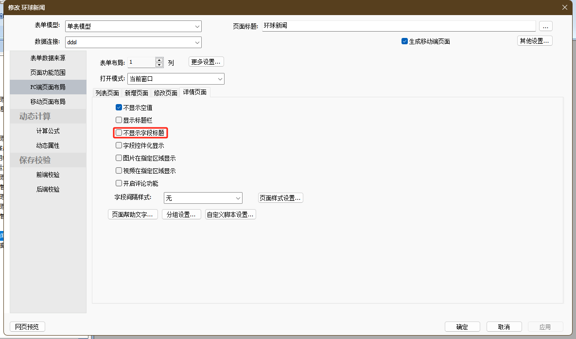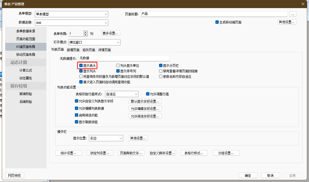根据业务展示需要配置PC端表单各类页面显示要素。