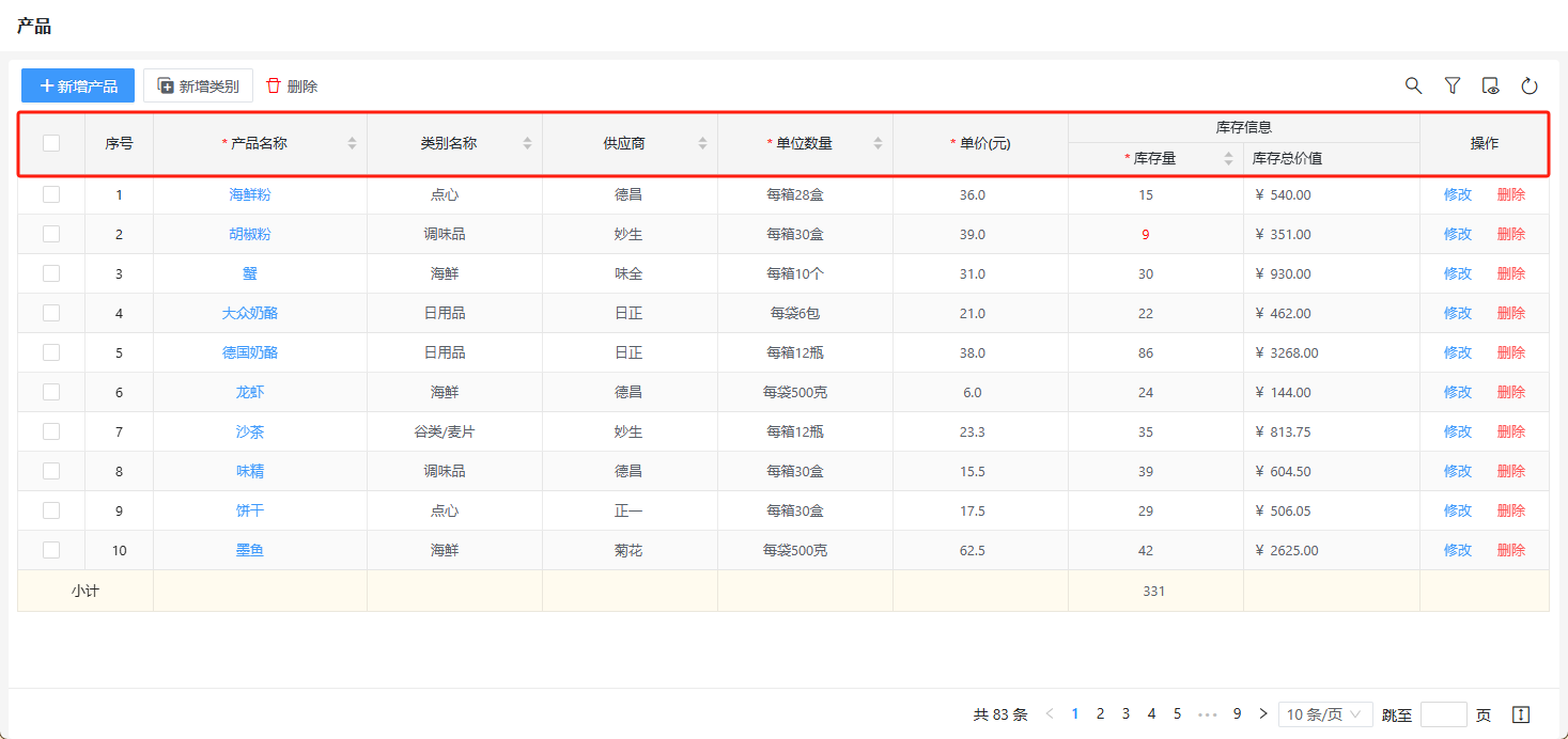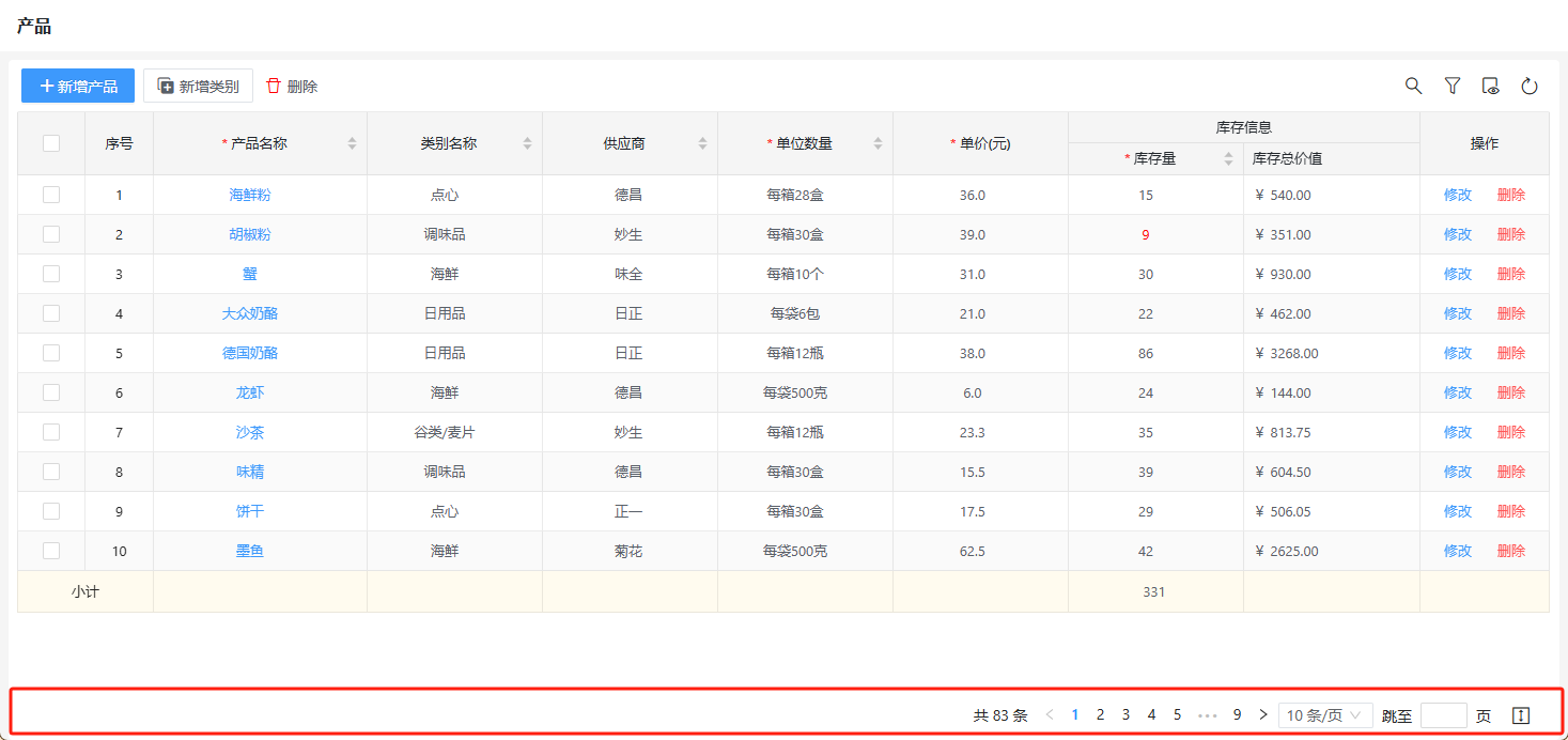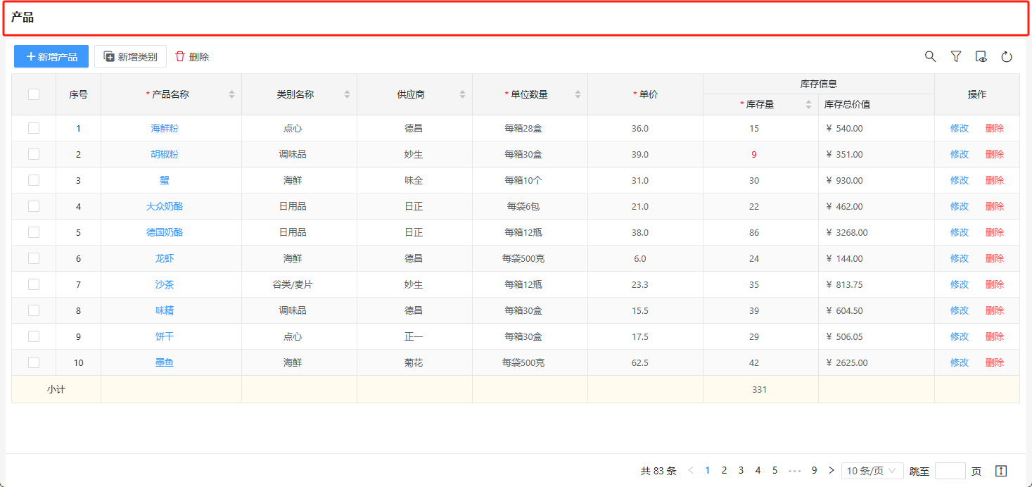 - 上图中第一次保存时,由于“供应商”字段未填写且“库存量”8小于10,分别触发了字段为空和自定义条件的提醒内容,用户想要回去完善填报内容可以点击取消保存后返回修改(部分字段为空的控件会标红显示提醒用户去填写);