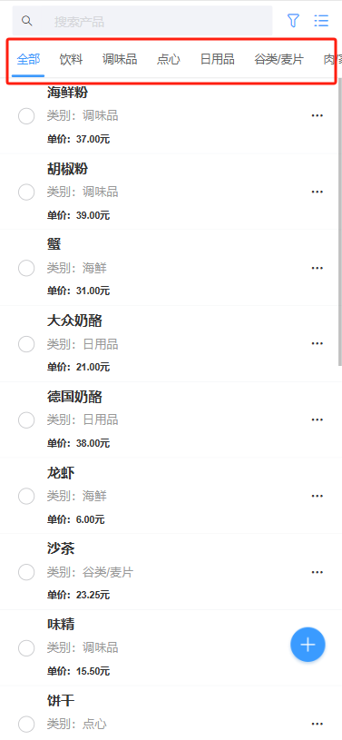 展示效果如下,可以直接通过tab页切换来过滤列表数据: