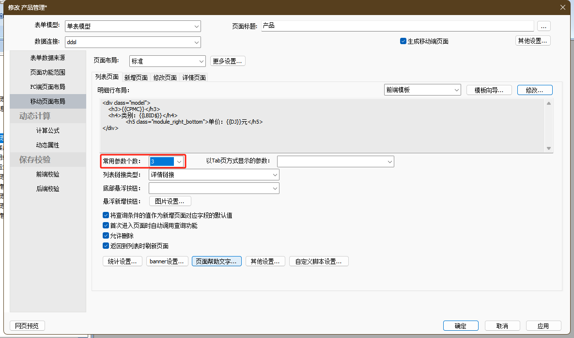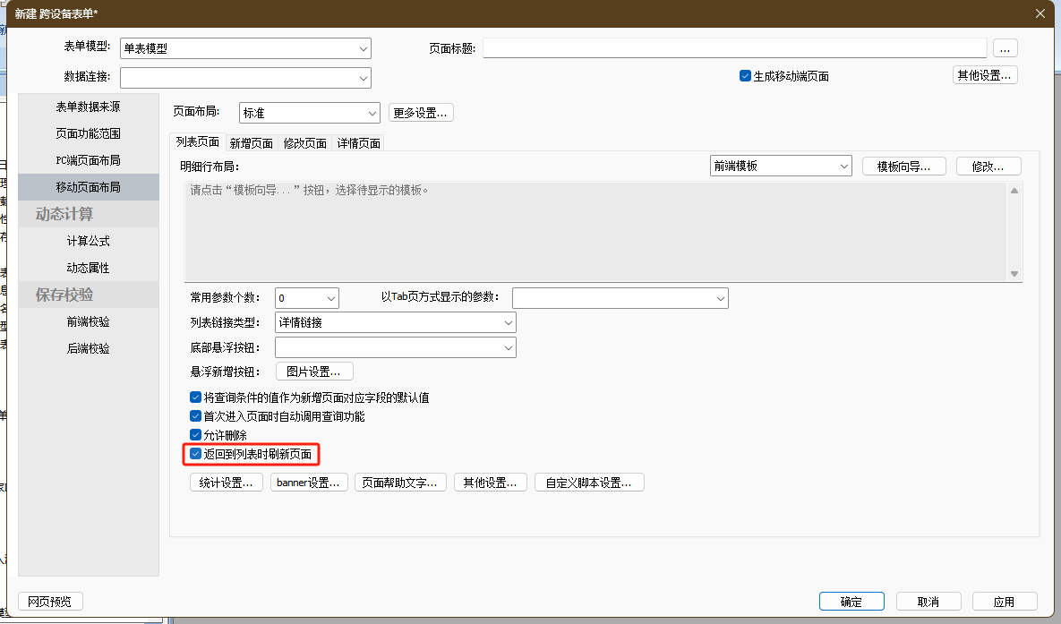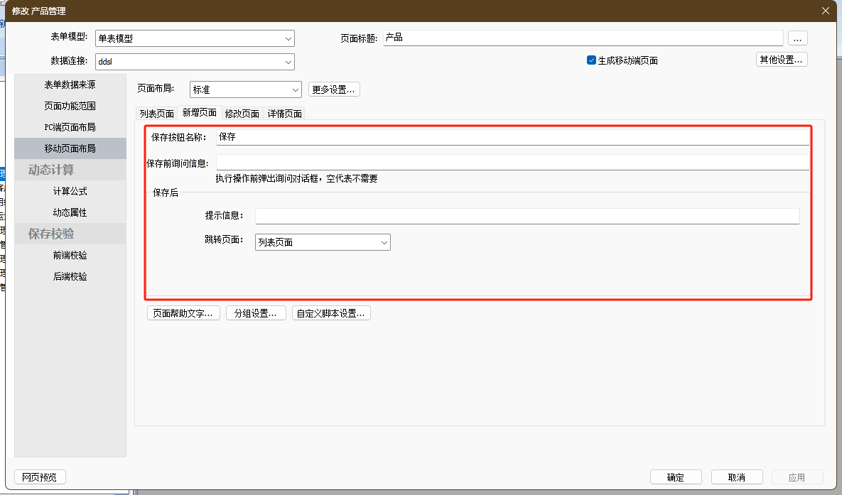 移动端保存按钮名称、保存前询问信息、保存后提示信息、保存后跳转页面等配置可以参考PC端配置说明。