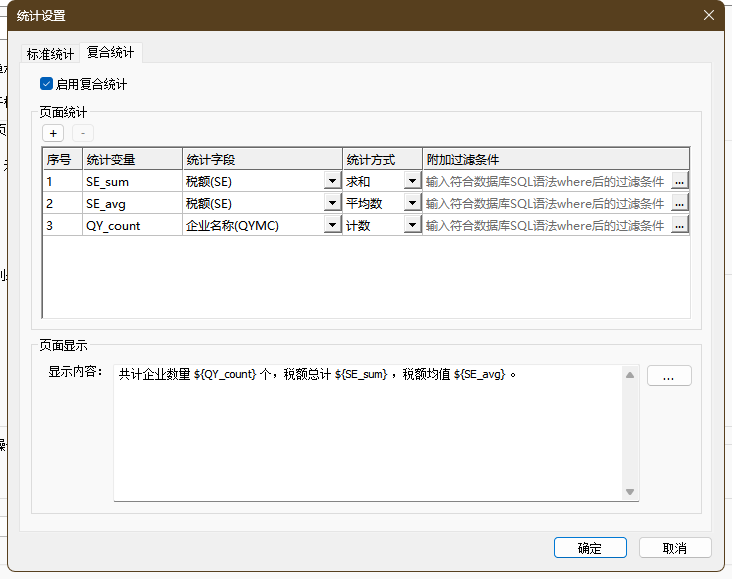 复合统计配置界面如下图所示: