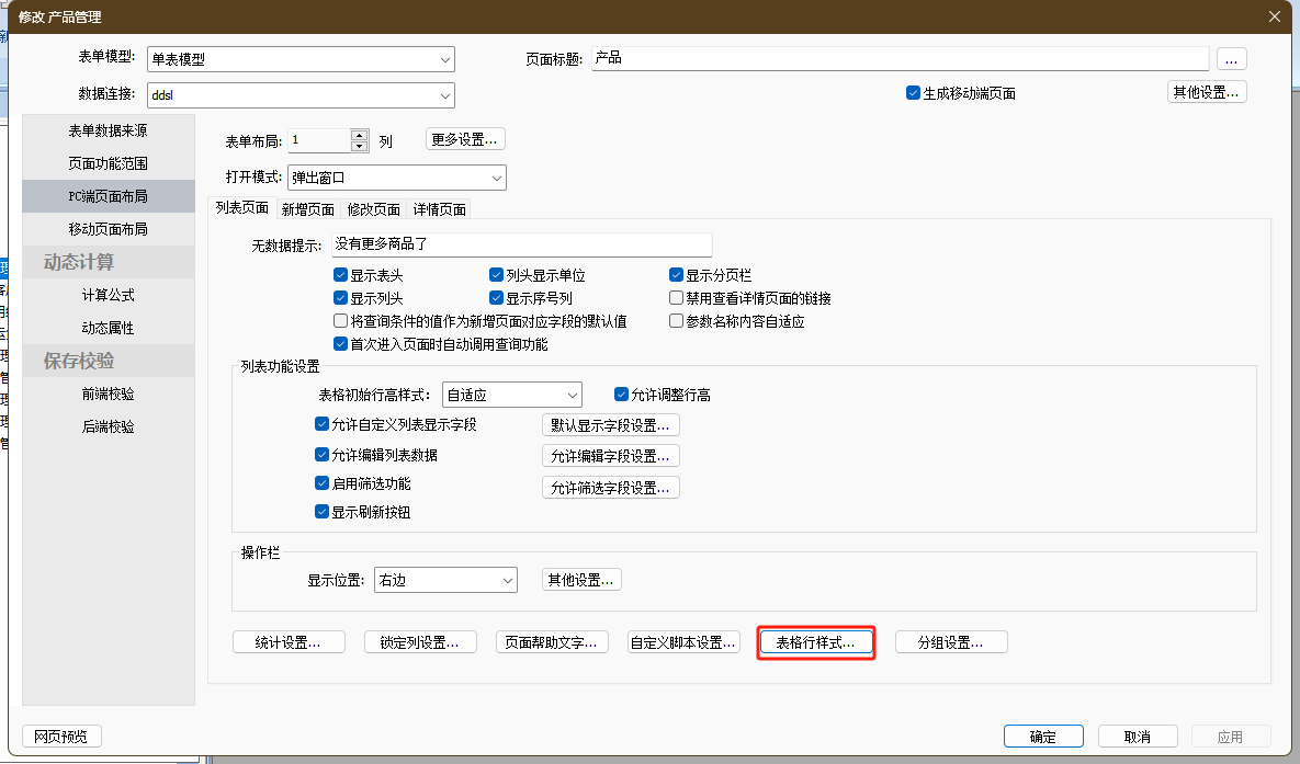 点击【表格行样式】,在弹出窗口中进行配置。