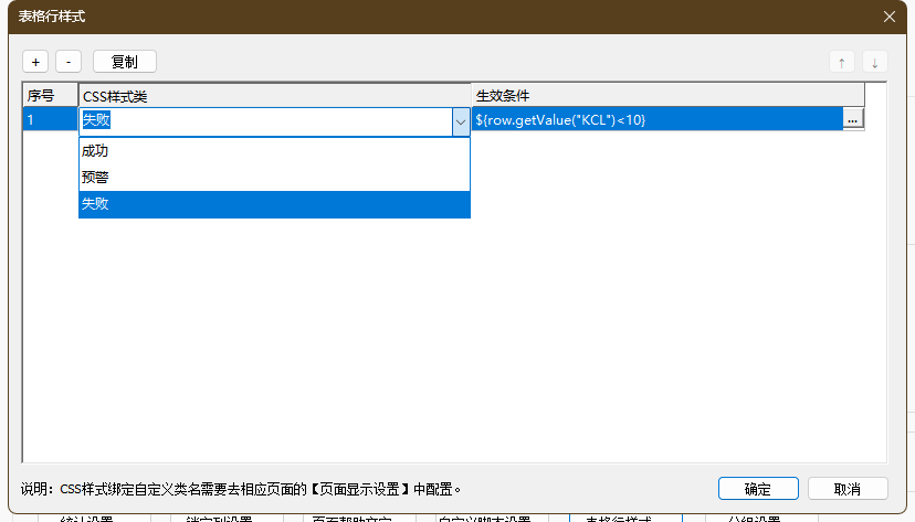 ③ 失败:行背景红色 - 生效条件:配置表格行样式生效条件,条件为true时生效。