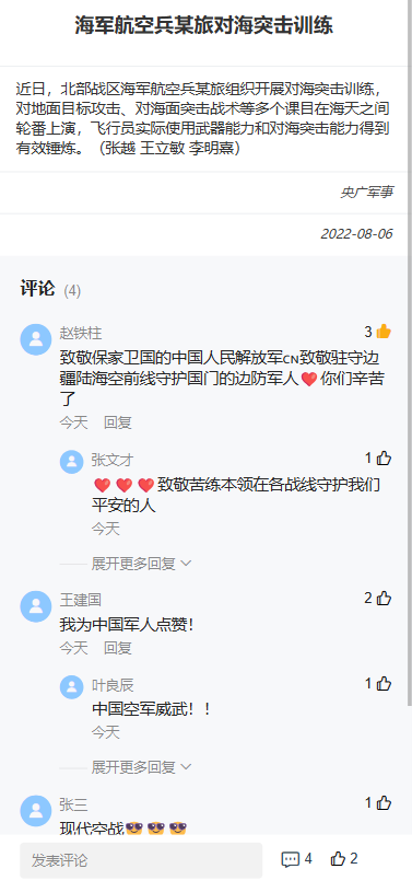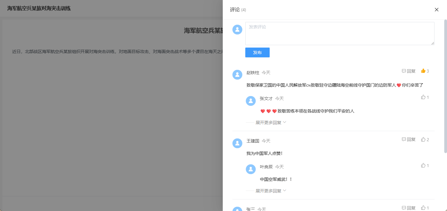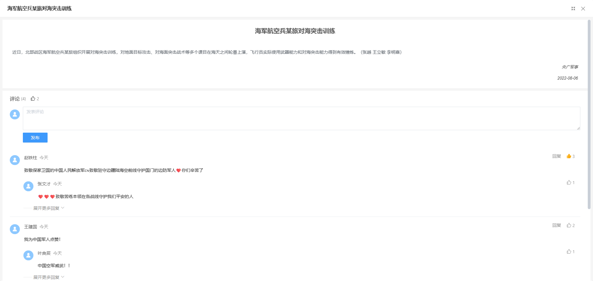 开启评论功能后可以在详情页面看到评论模块,用户可以在此发布评论、回复他人评论、删除本人评论、点赞等操作。