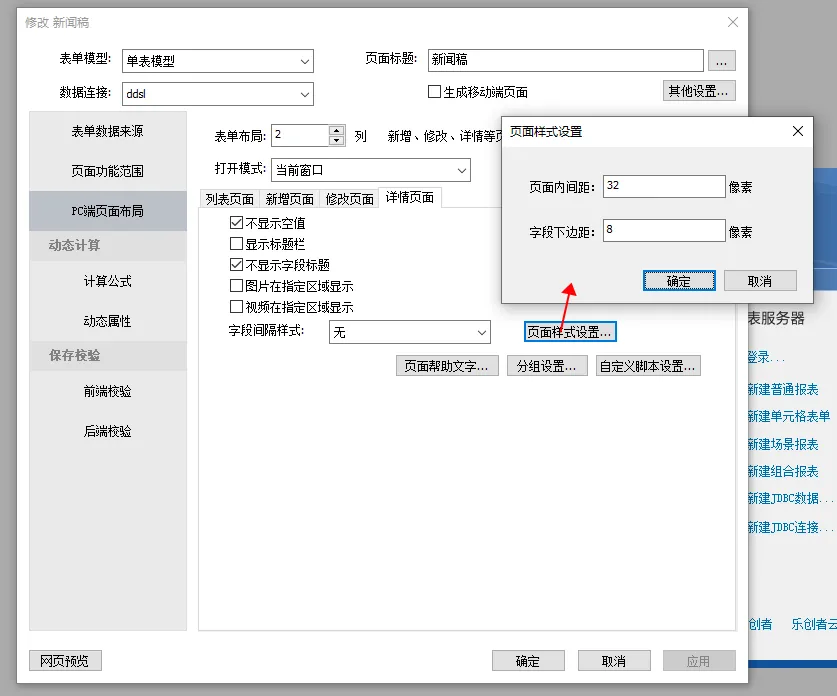 687版本支持对PC详情页面内边距和字段间行间距进行全局调整,配置也买如下图所示。