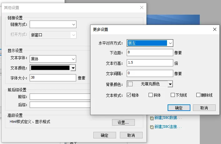 然后在“其他:链接、字体、颜色、css样式”中点击“设置”进入“其他设置”,在显示设置一栏可以看到可以对文本字体、文本颜色、字体大小进行设置,点开“更多设置”可以对字段内容的水平对齐方式、下边距、文本行高、文字间隔、背景颜色、文本样式等进行配置。在这里对需要调整样式的字段逐一按需配置就可以使详情页面字段内容样式丰富和生动起来了。
