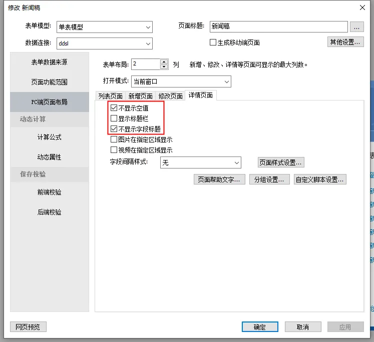 此处省略其他字段调整配置说明,逐一调整后的“新闻稿”详情页面最终呈现效果如下图所示。