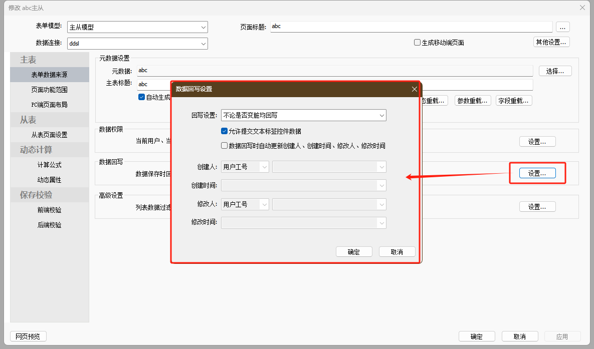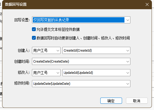 1、主表:【回写设置】下拉选项:①不论是否变脏均回写 ②仅变脏时回写