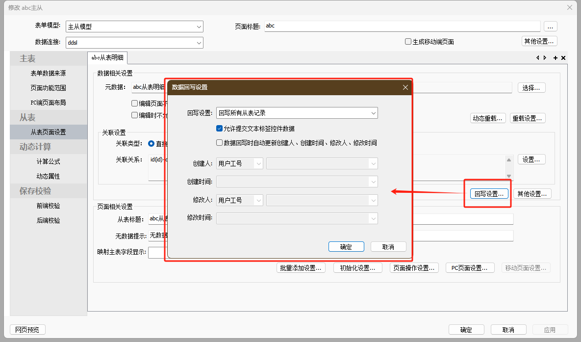 1、单表模型/主从模型/树模型/多对多模型-表单数据来源-数据回写设置