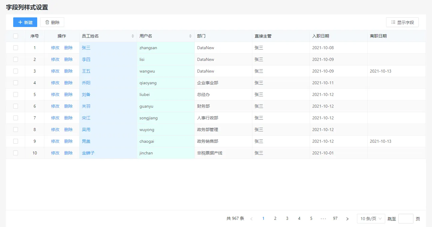 可以为列表指定字段列定义css样式,如需为前面的表格中的“姓名”和“用户名”自定义表格底色样式,就可以使用这个类名。