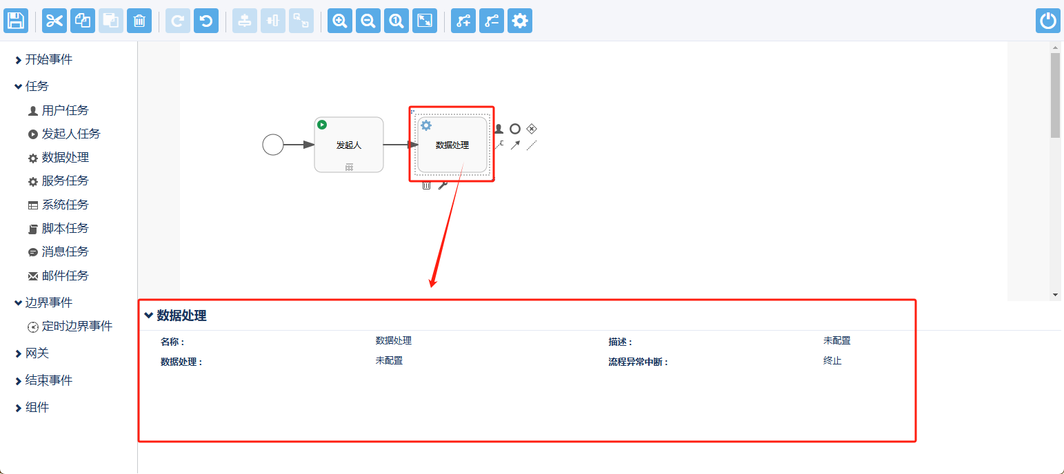数据处理任务可以作为一个流程节点可配置在流程流转过程中的任意位置,其主要功能是当流程流经此类型任务时可以进行一番数据处理。