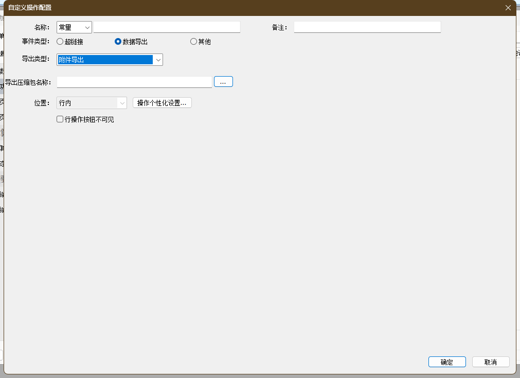 - 压缩包名称,由配置中的表达式或常量来确定,当表达式解析为空或去除非法字符后内容为空时,压缩包名称缺省值为“附件导出”。