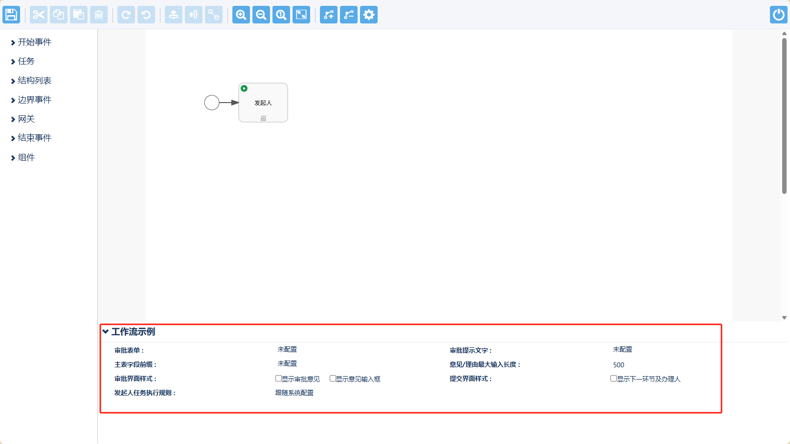 绘制区域未选中任何流程图组件时,配置区域可配置项如下图所示: