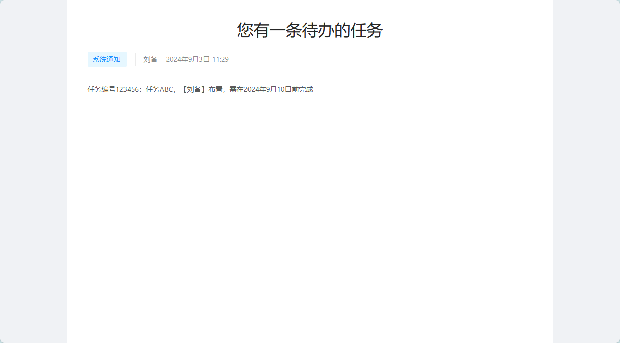 - 标题下方显示:消息类型(系统通知)、发布人、消息发布时间;