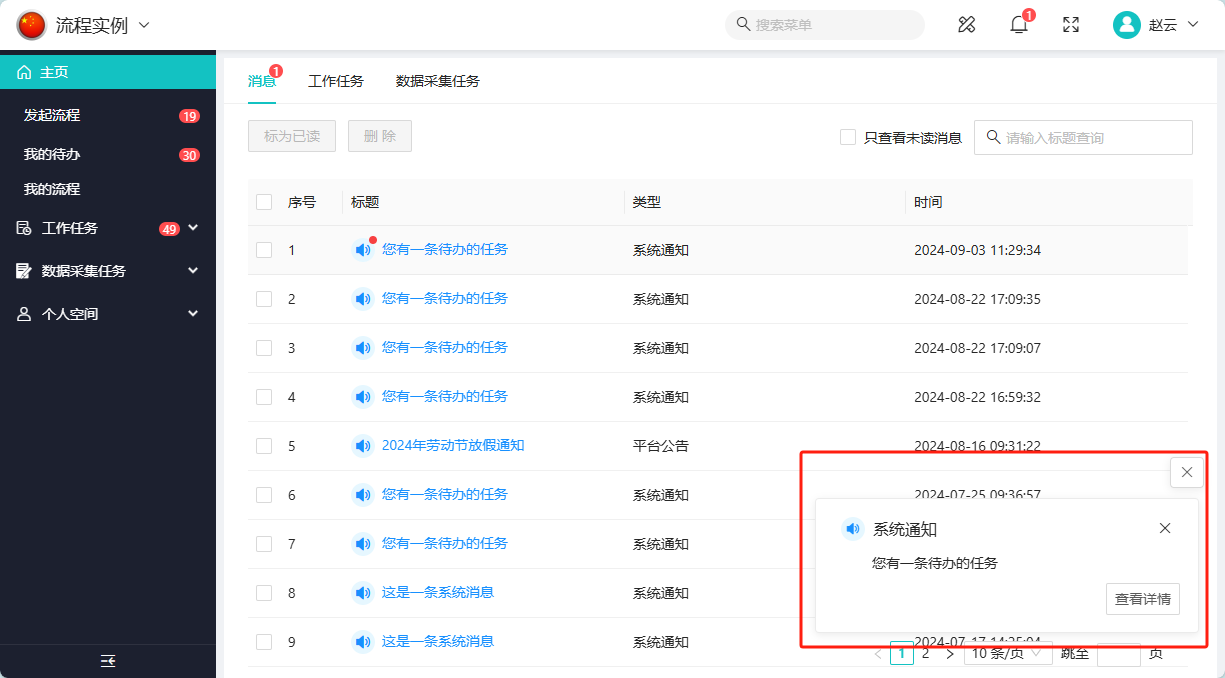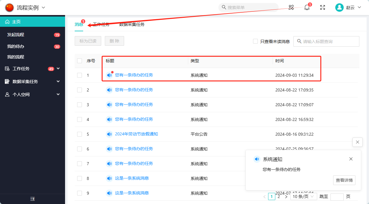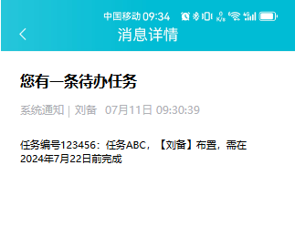 如下图所示在消息列表中显示该类型系统通知消息,类型为“系统通知”。查看详情: