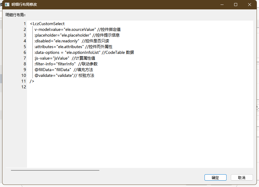 - 控件名称:需对应注册的前端控件名称,例如前文 2.3 组件导出配置 中的控件名称为“LczCustomSelect”。
