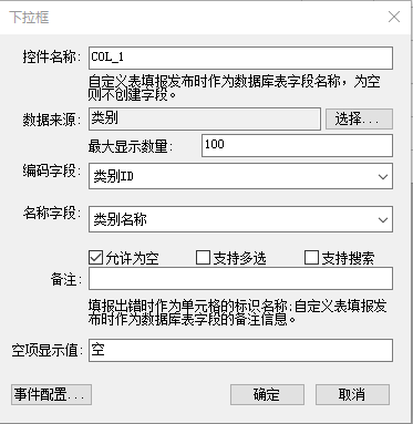 - 空项显示值:默认为空。可设置任意值,设置空项显示值后,在数据填报时下拉框控件中的空项显示为设置的值。