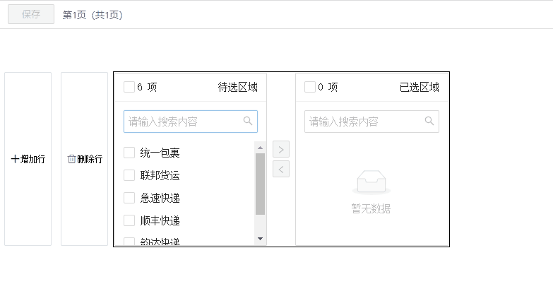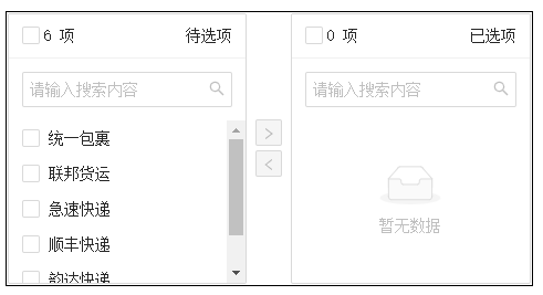 支持搜索:默认不支持搜索。当设置支持搜索后,穿梭框控件中显示出搜索框,支持通过选项名称进行搜索。
