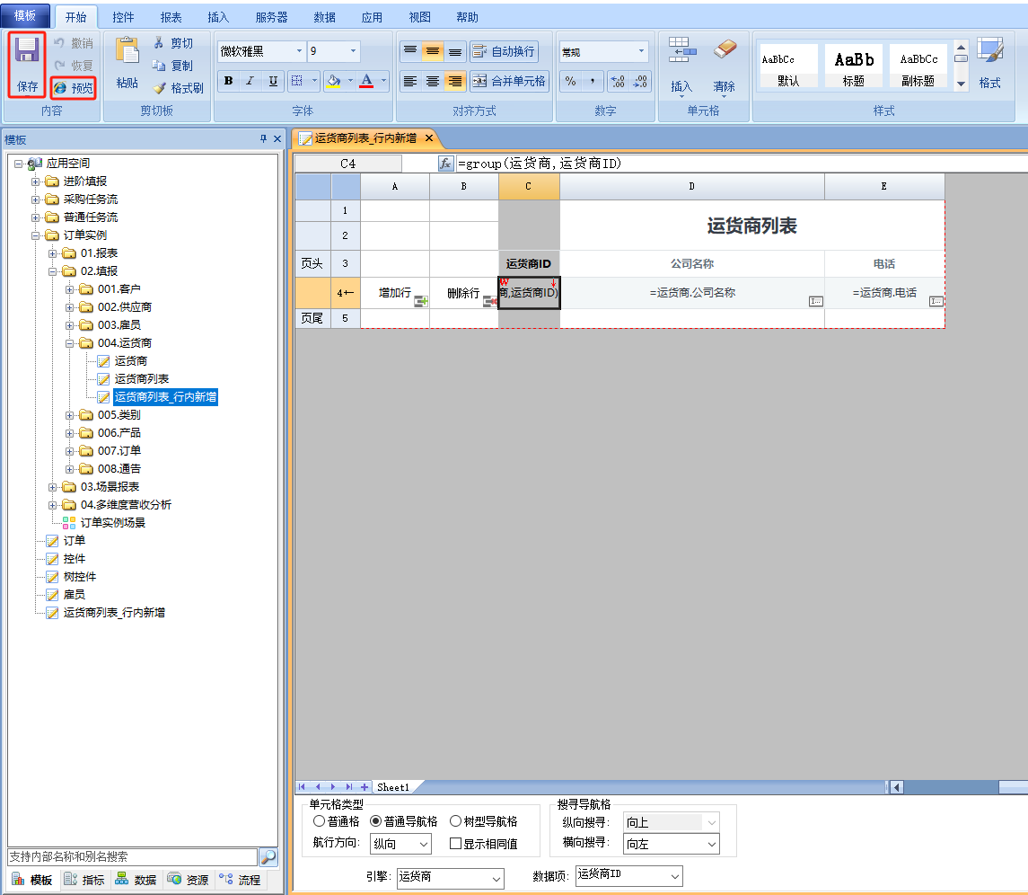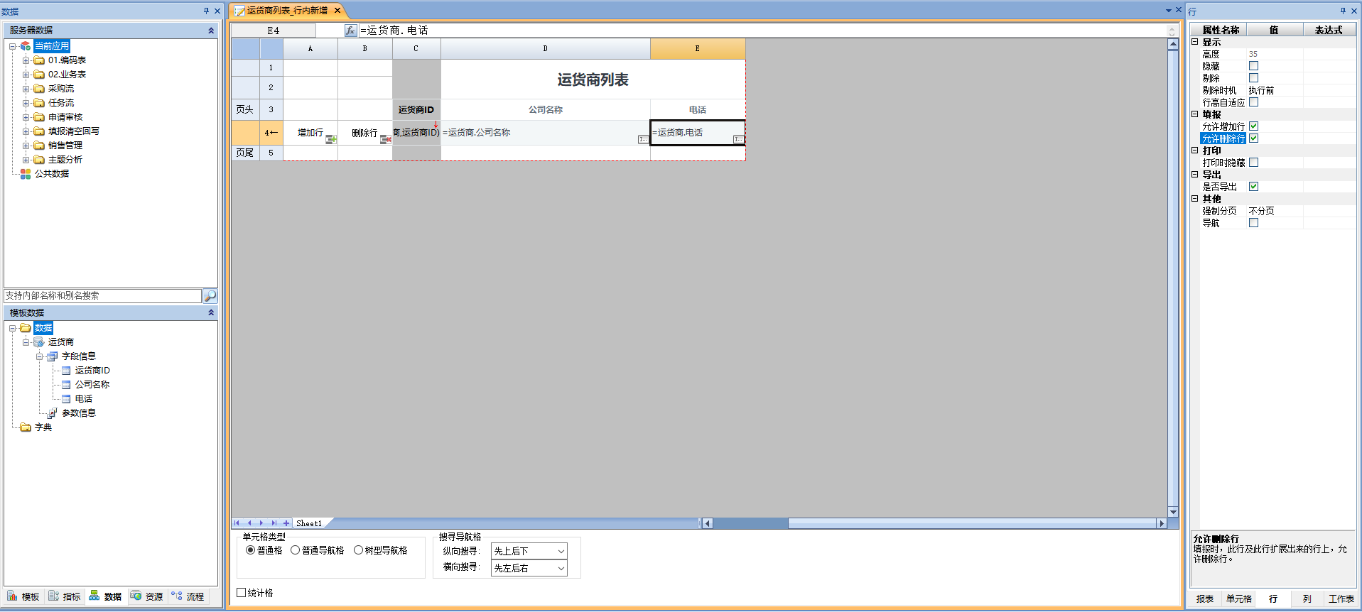 模板地址:订单实例\02.填报\004.运货商\运货商列表_行内新增