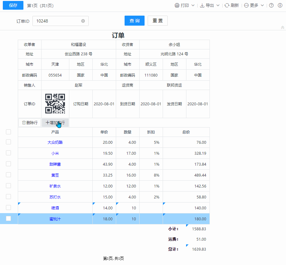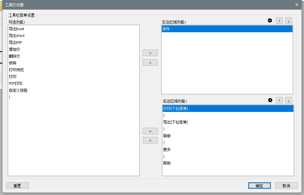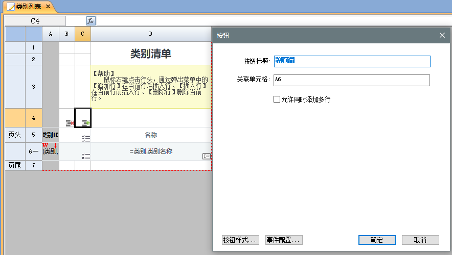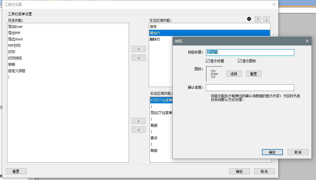 工具栏功能配置提供自定义系统按钮的方式,其中包括新增行和删除行