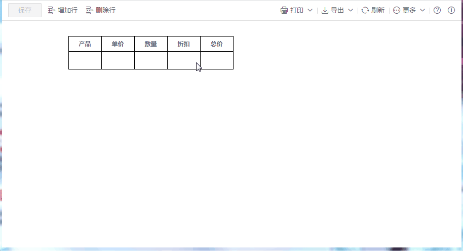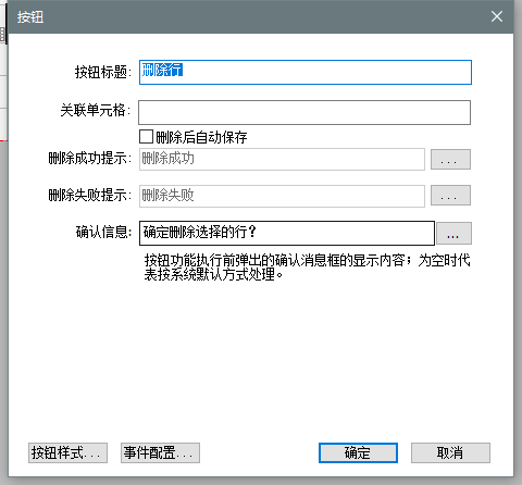 将新增删除按钮控件放在扩展行内即可支持新增删除行功能。扩展行内的新增删除按钮根据行扩展关系按行处理新增或删除。可以不配置关联单元格。