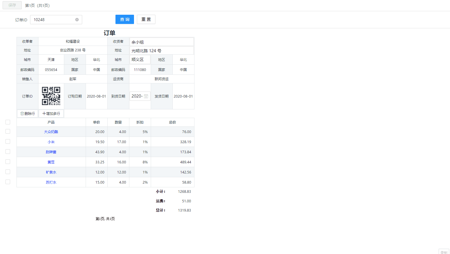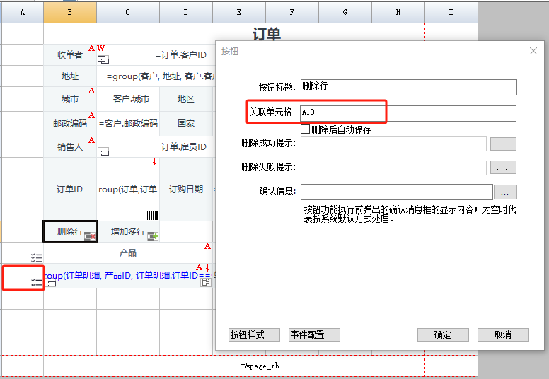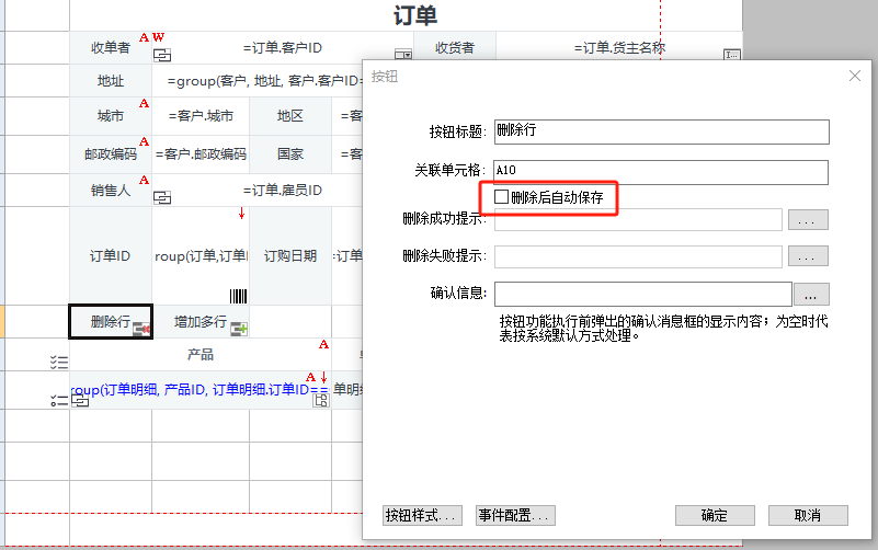 以下图中的订单明细新增、删除为例,制作出相应表单: