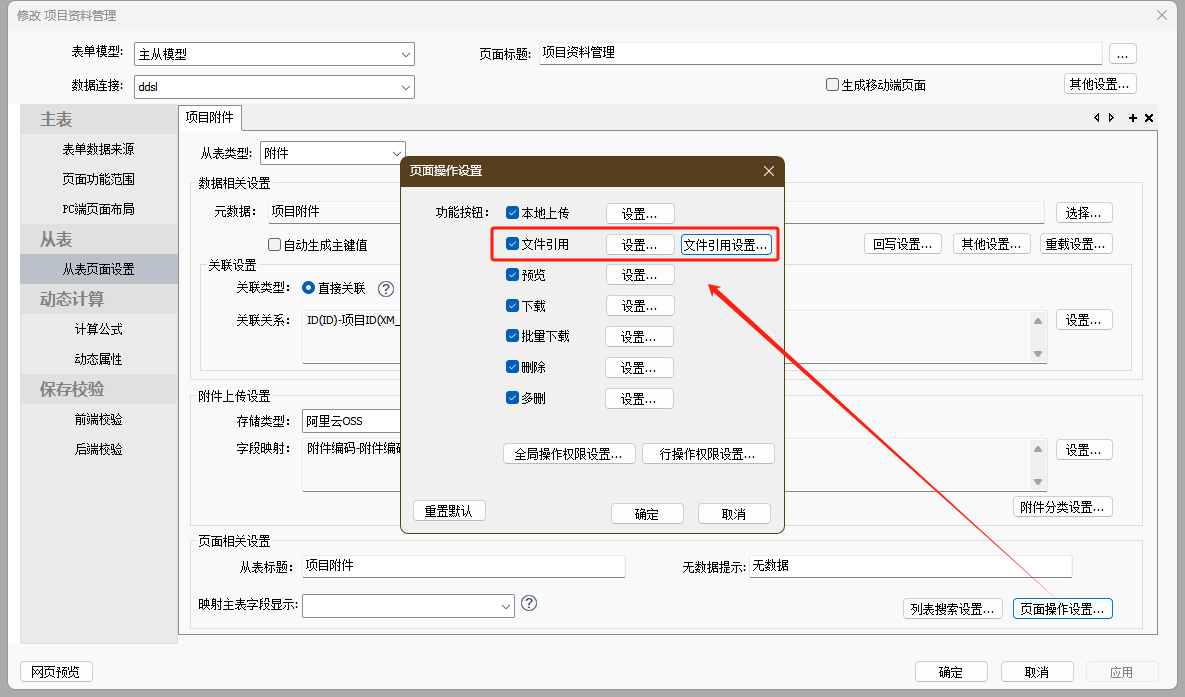 首先,需要在【页面操作设置】中启用“文件引用”操作。