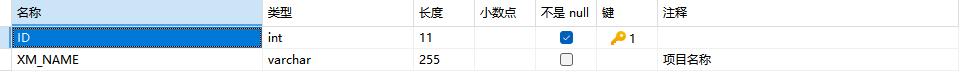 - 与主表关联的外键:作用是构建主从关系,如上示例中就是“项目编号”字段XM_ID。