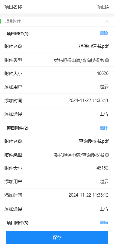 与主表关联的项目资料从表(例如包含附件名称、系统附件表附件编号等),