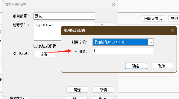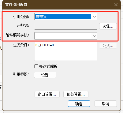【引用标识】前文章节提到过是用于记录文件的添加方式(上传或引用),从而可以实现一些业务上的过滤,在此可以指定引用标识字段和引用值。本例中我们指定预设的字段IS_CITED,并定义引用值为1(前文文件引用范围过滤时已经用到了这层业务意义)。