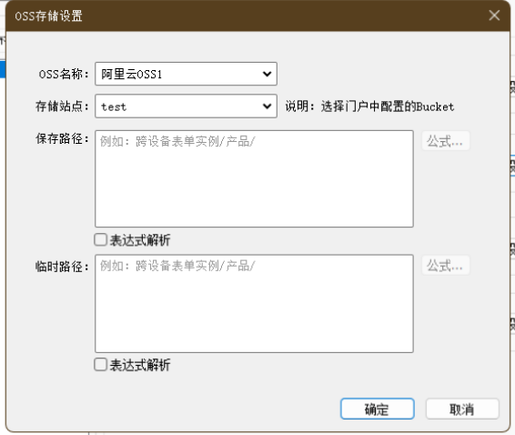 存储设置中需要选择门户第三方平台中创建好的OSS配置及Bucket,需要配置对应的保存路径和临时存储路径。