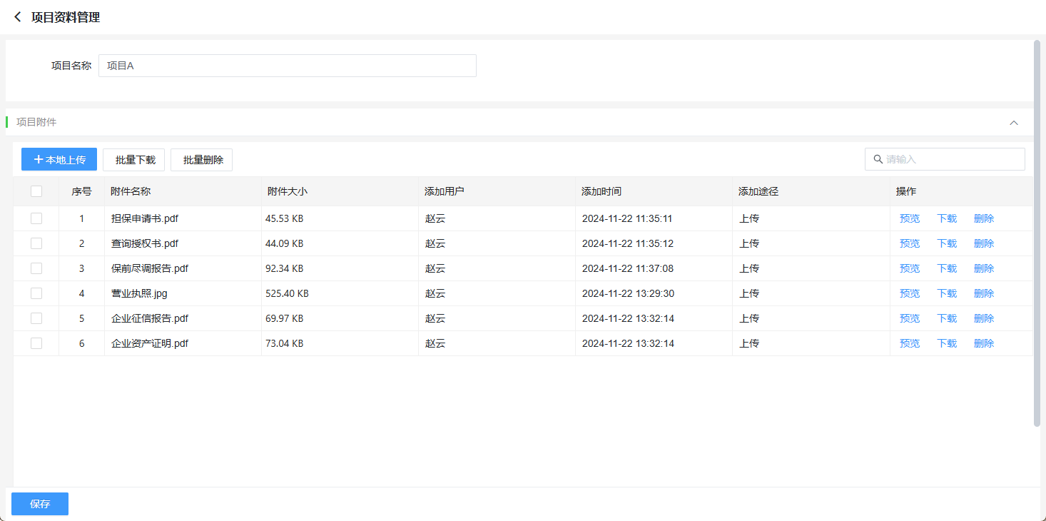 - 编辑页面显示的操作:本地上传、文件引用、预览、下载、批量下载、删除、批量删除;