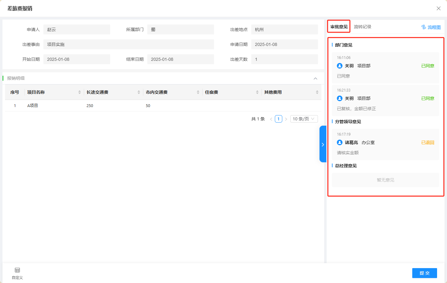 有些业务在流程审批时会按照业务将流程审批意见进行分组展示,突出关键环节的审批意见,便于审批人员查看。