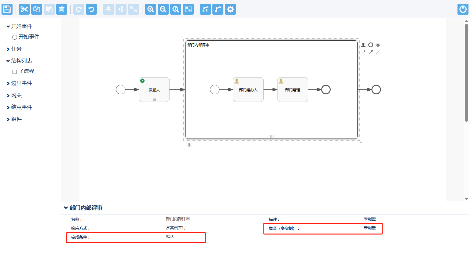 - 【完成条件】用户配置多实例子流程完成条件。