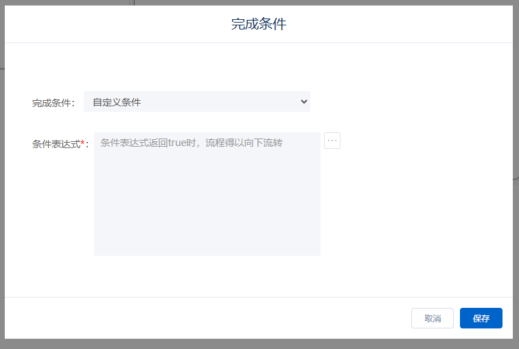 当使用自定义条件时,条件表达式返回true时,结束子流程,流程得以向下流转。