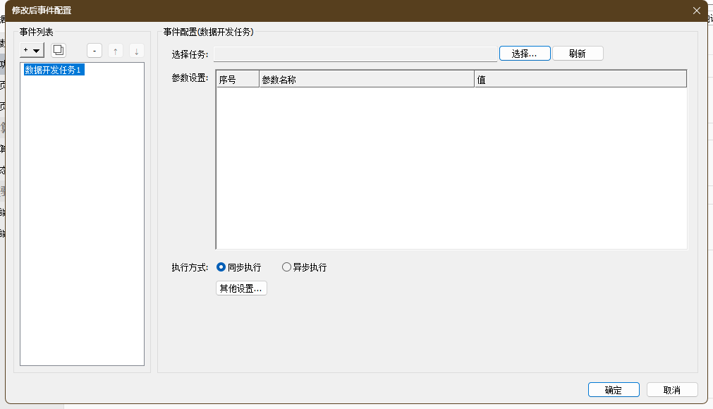 - 异步执行:表单只管触发数据开发任务,无需等待完成结果。配置建议:若数据处理较为复杂,通常建议选择异步执行,避免影响表单操作体验,可以在表单层面做好类似“数据更新可能会有延迟,请稍后刷新查看”等提示。
