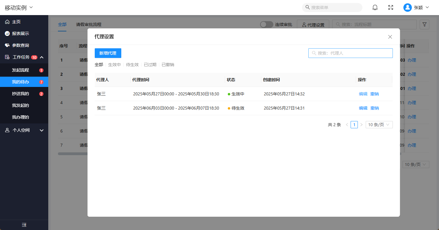 (1)代理规则生效期间,【代理人】会接收后续生成的待办任务和待办通知。