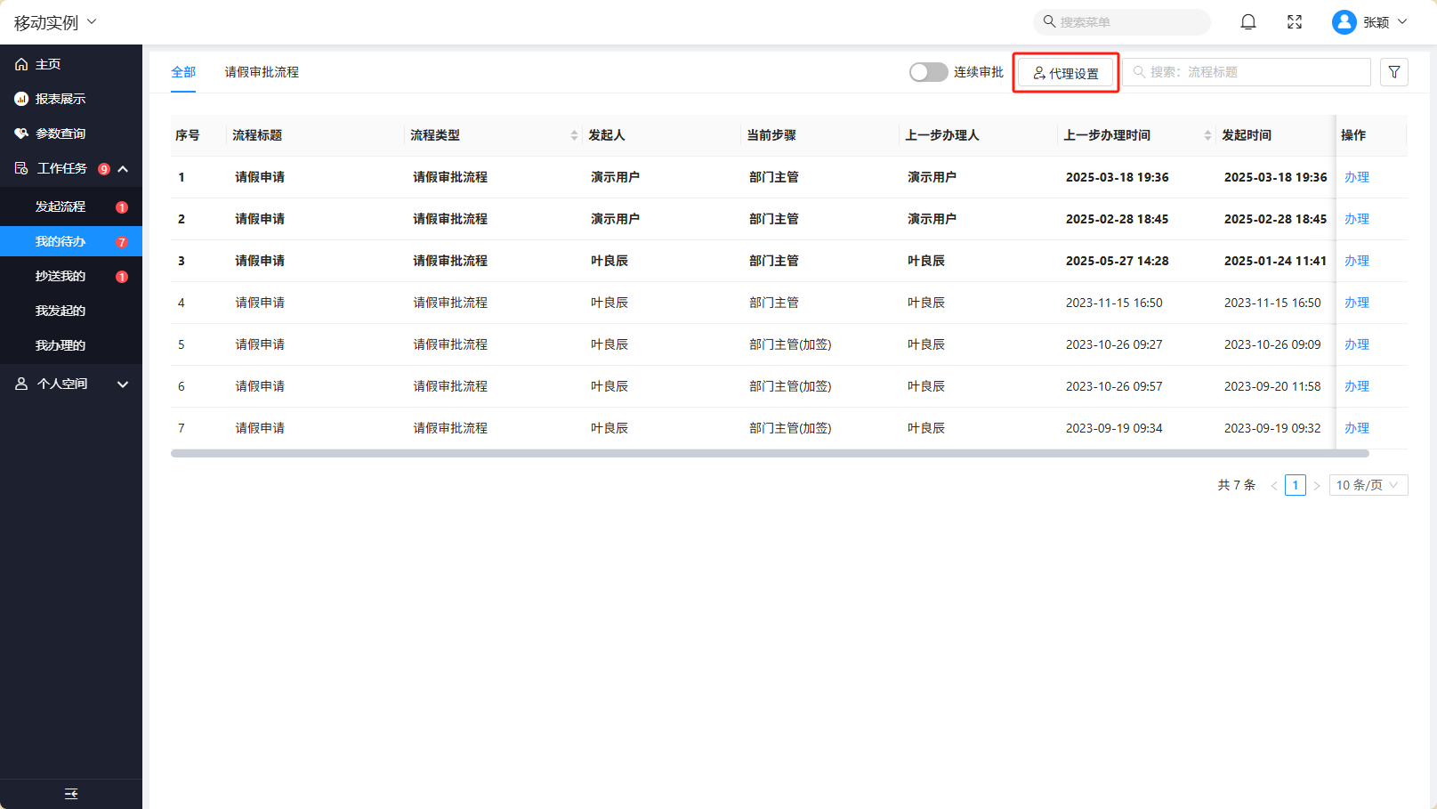 在OA业务系统中,用户因休假或离职无法及时处理流程任务时,若不进行手动转交可能会导致流程停滞或延误。本功能旨在通过代办任务移交规则的设置,确保规则生效期间的流程任务可以自动化移交给代理人,确保流程办理可以无缝衔接。