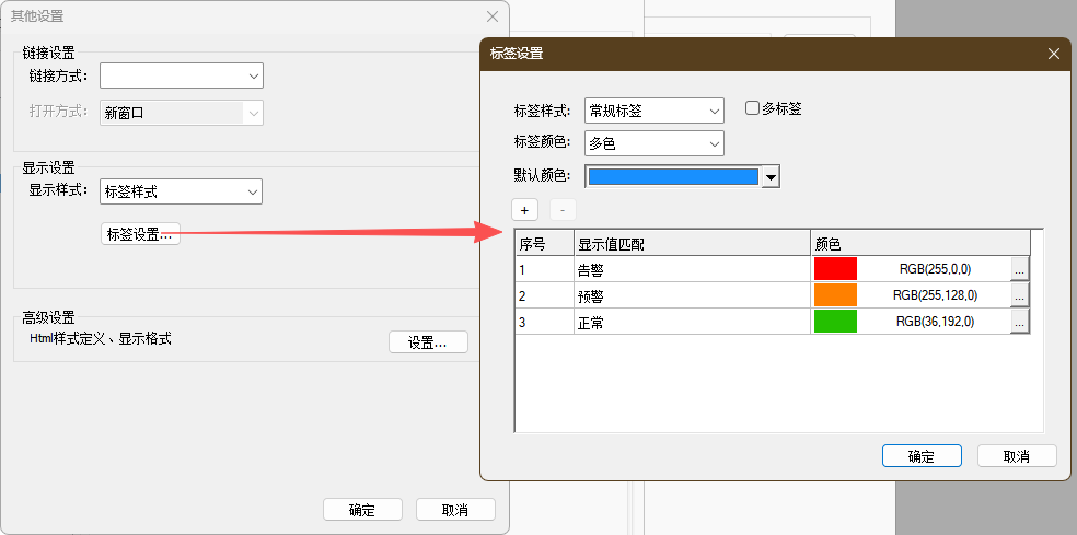 选择“单色”时,不论是否多标签展示,标签内容展示为同一种颜色只要配置一个默认颜色。
