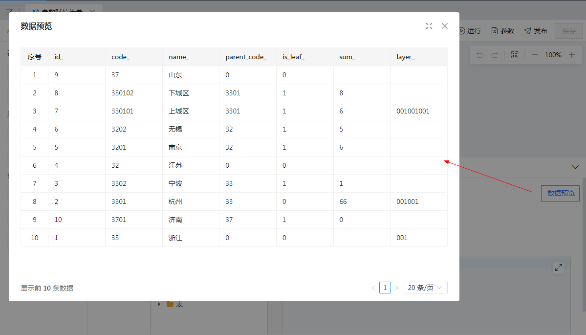 点击“数据预览”可以先看下获取的数据,方便输出参数的值来源配置,如下图: