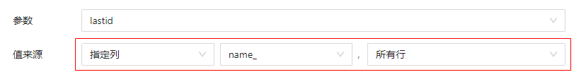 指定数据来源中获取的行列数据作为参数的实际值,支持指定某一行数据、某一列数据或某个单元格值三种。