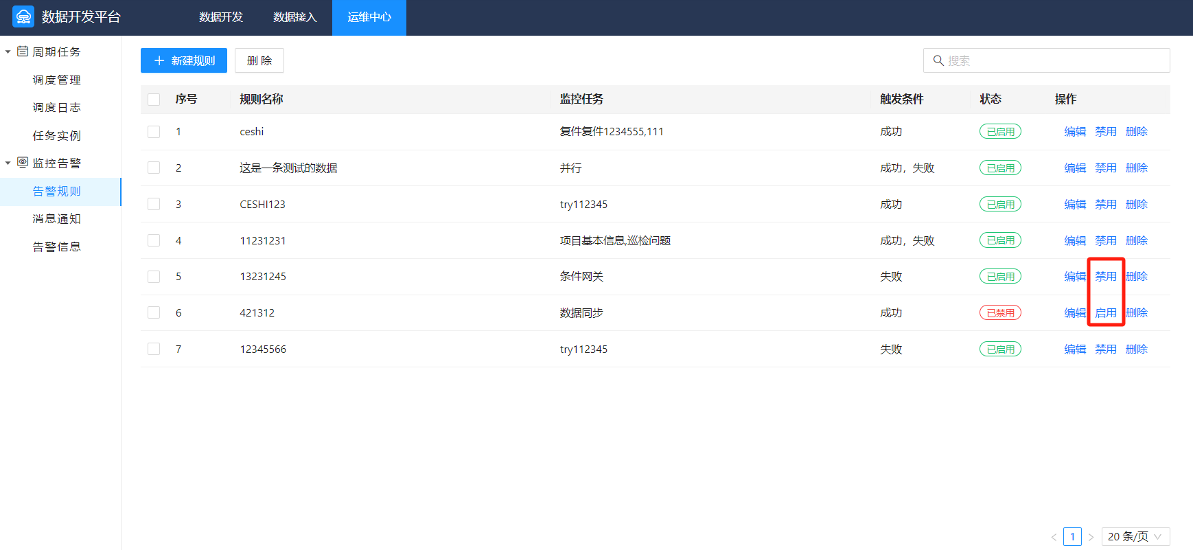 点击「启用/禁用」按钮,即可修改本条规则的状态。如下图: