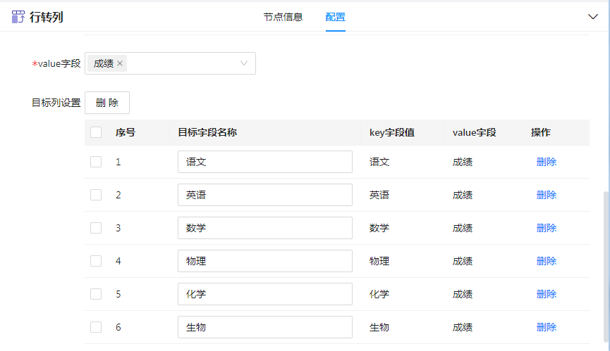 - “value字段”设置为:成绩,将自动生成目标列,目标字段名称支持修改,如下图:
