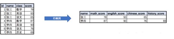 所谓的行转列是指把数据表中具有相同key值的多行value数据,转换为使用一个key值的多列数据,使每一行数据中,一个key对应多个value。