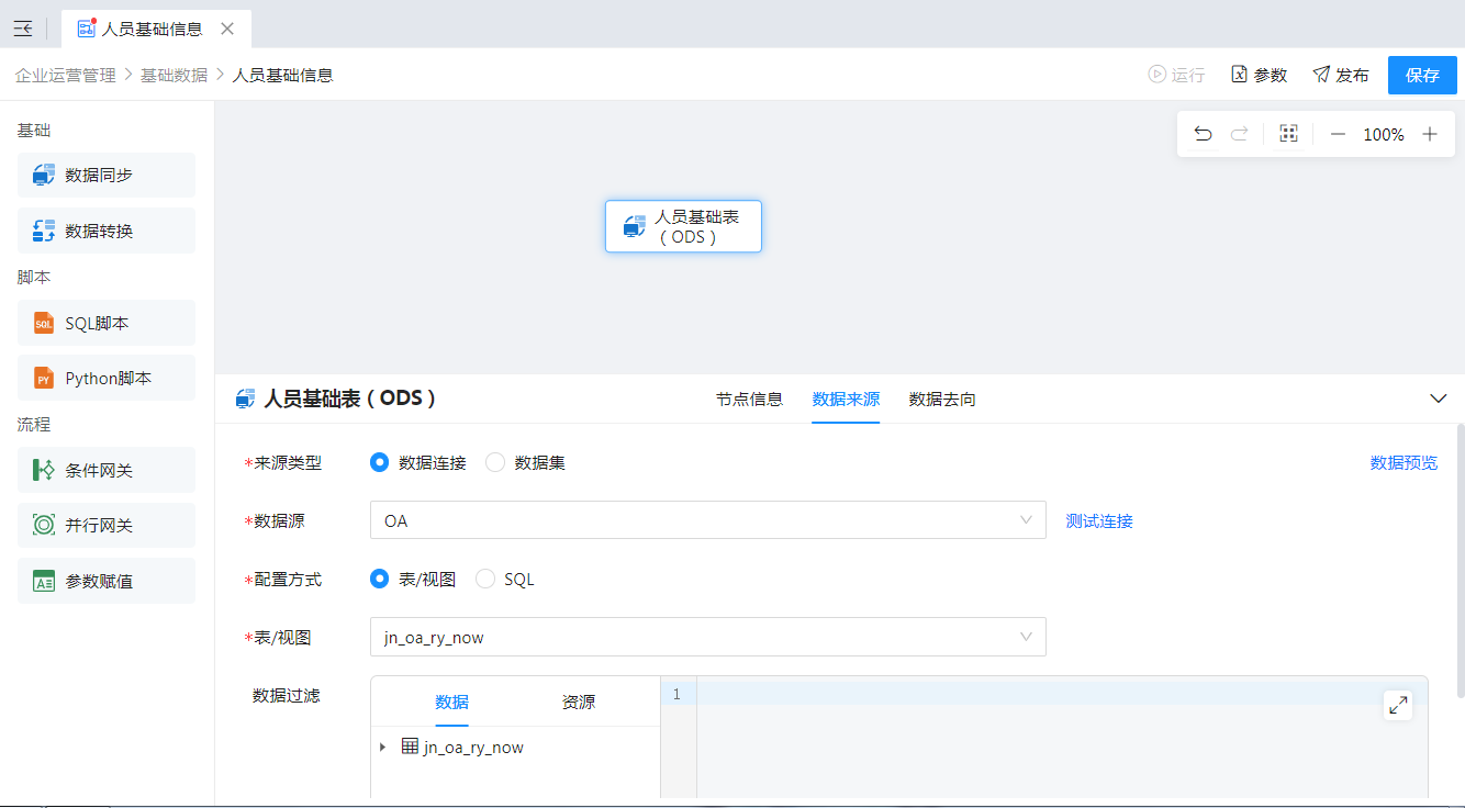 主要就是要把OA系统中的“jn_oa_ry_now”表原表原样同步至 qyyy_originaldata 应用库的“ods_ry_now”表中,产出的是ods层数据供人员考勤和项目合同业务进行使用。