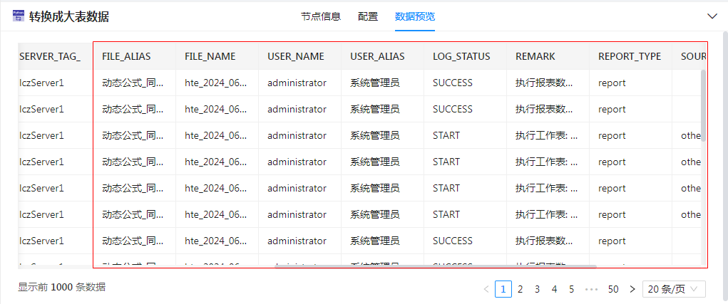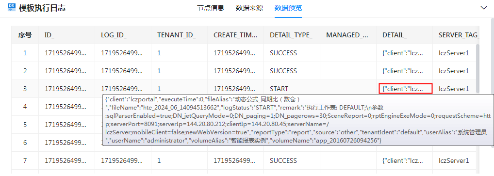 点击“数据预览”可查看最终处理的结果,如下图,“SERVER_TAG_”后的列均是增加的列。